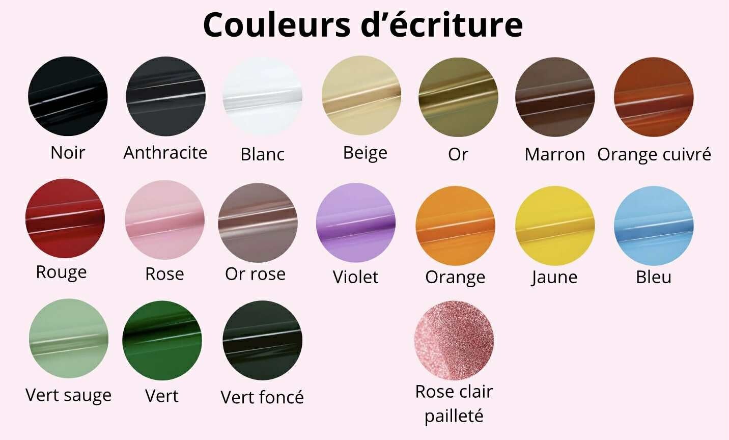 Vous avez le choix entre plusieurs couleurs et 4 styles d’écriture (uniquement pour le prénom).