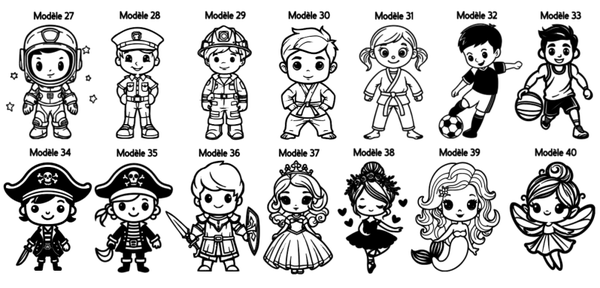 Indiquez ici le modèle souhaité ainsi que le prénom à inscrire