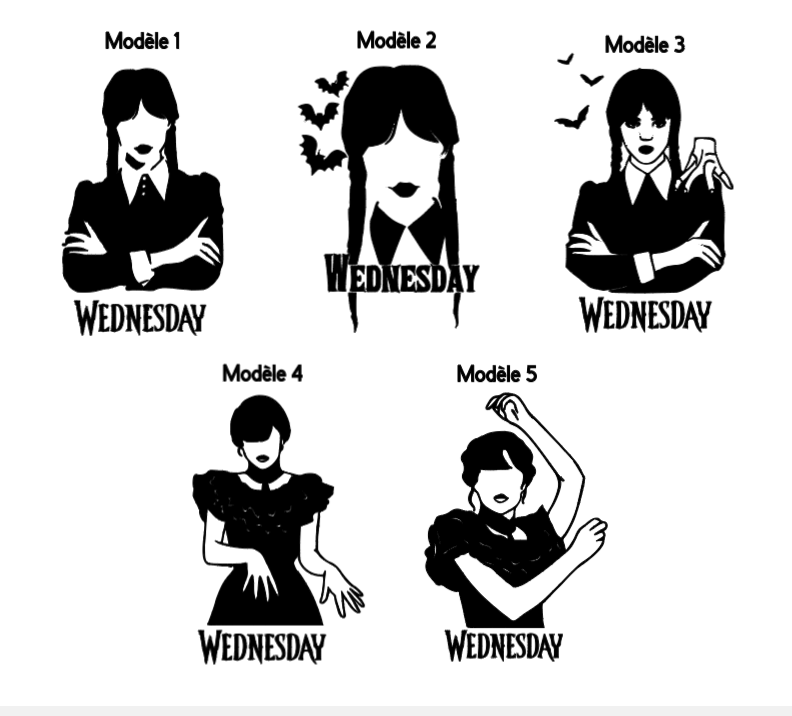 Un prénom peut tout à fait être ajouté à la place de « Wednesday » dans la couleur de votre choix (hormis pour le modèle n°2).