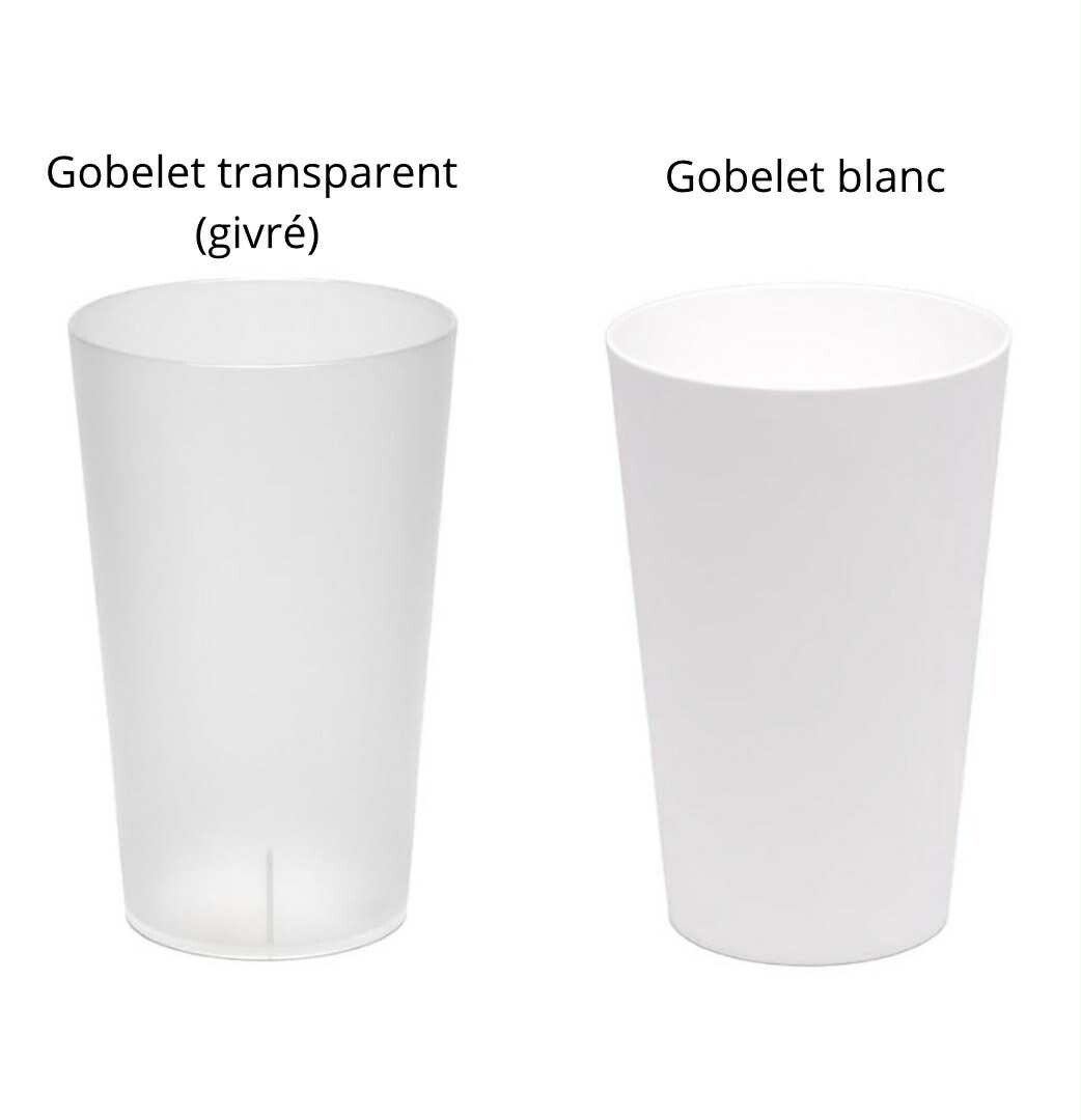 Vinyle permanent collé sur le gobelet : résiste sans problème au lavage à la main mais ne passe pas au lave vaisselle.