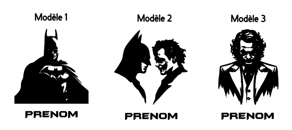 3 modèles au choix et plusieurs couleurs disponibles. Le modèle sera obligatoirement en noir mais vous pouvez choisir une seconde couleur pour le prénom. Une inscription peut tout à fait être ajoutée.
