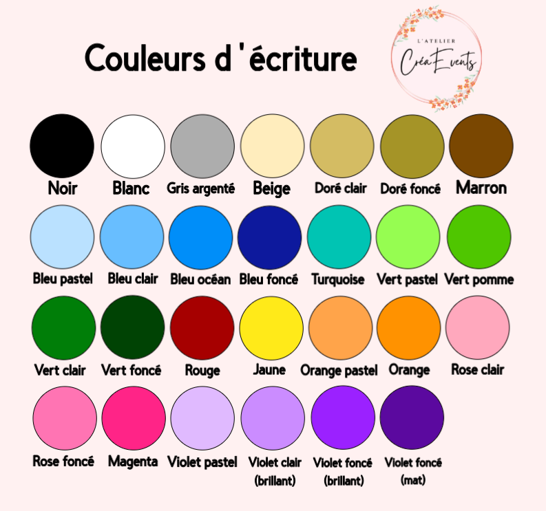 Indiquez ici les 2 couleurs souhaitées ainsi que le prénom et l'âge à inscrire